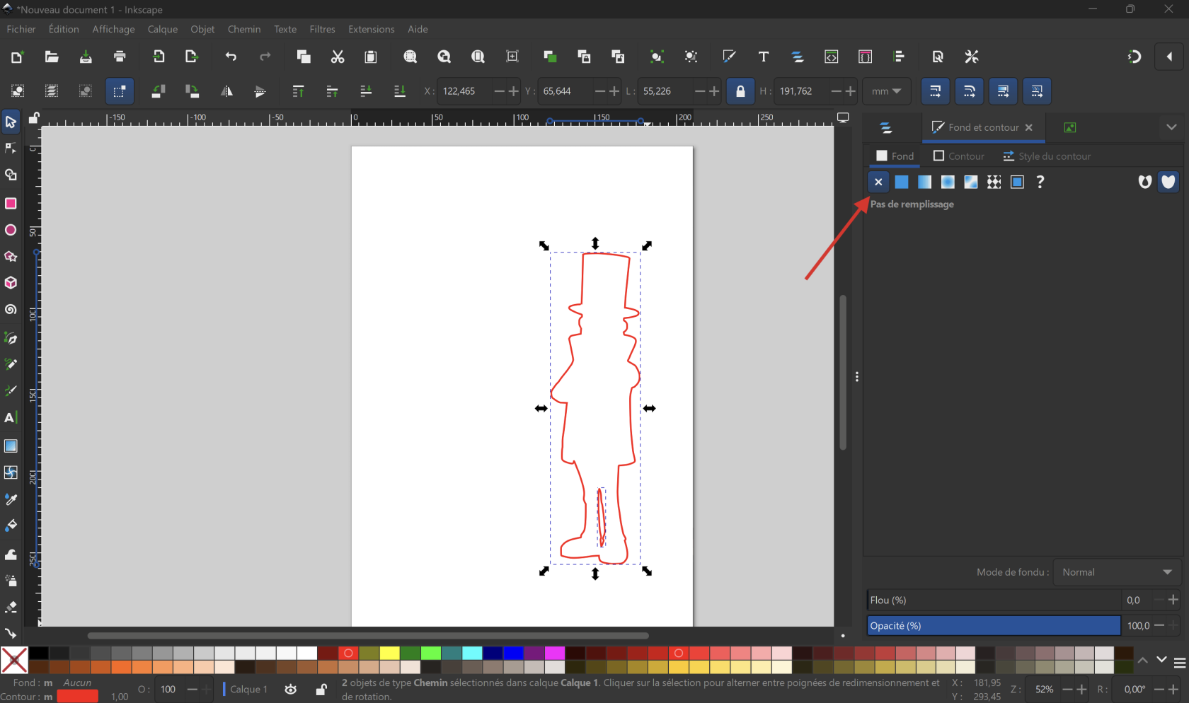Puis, tout en gardant les éléments sélectionnez, allez dans Fond et contour -> Fond et supprimez le fond en appuyant sur la croix