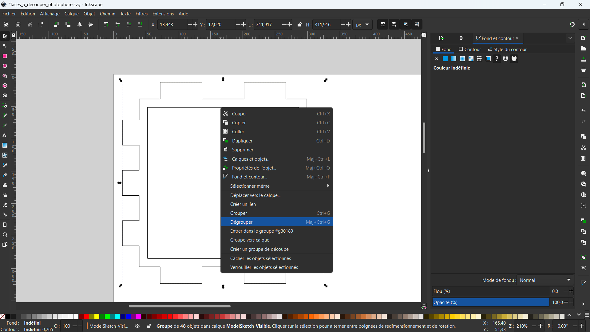 Pour dégrouper, c'est clic droit puis "Dégrouper" :